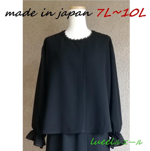 喪服 ゆったり ドロップショルダー パフスリーブ 小花レース使いタック ブラウス 《7L〜10L》116300-3