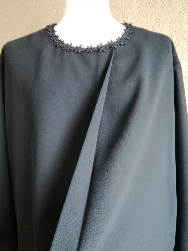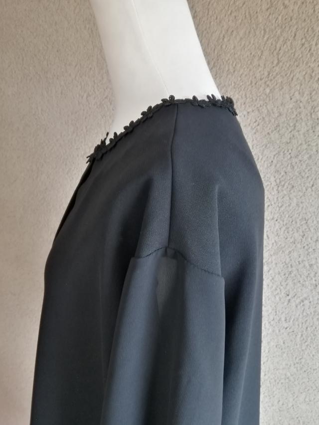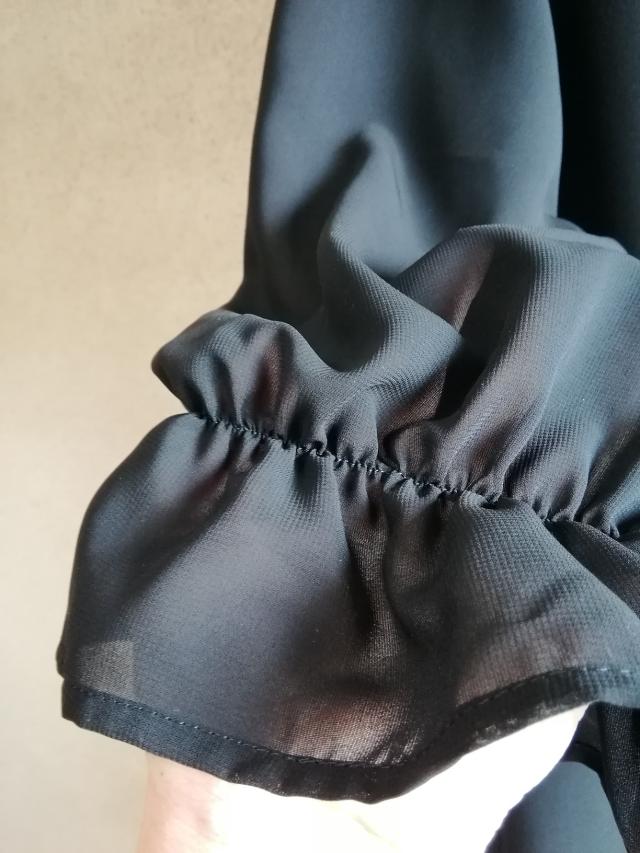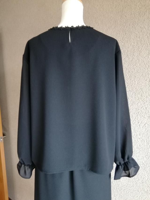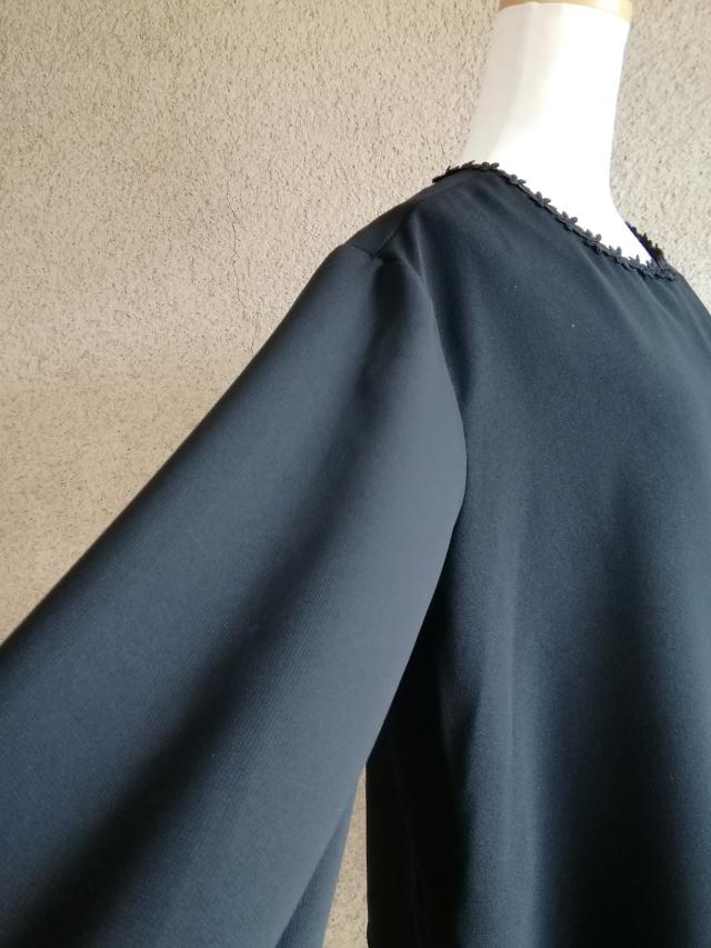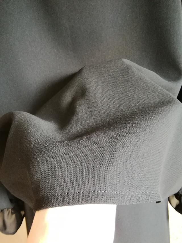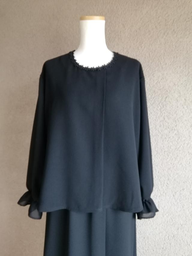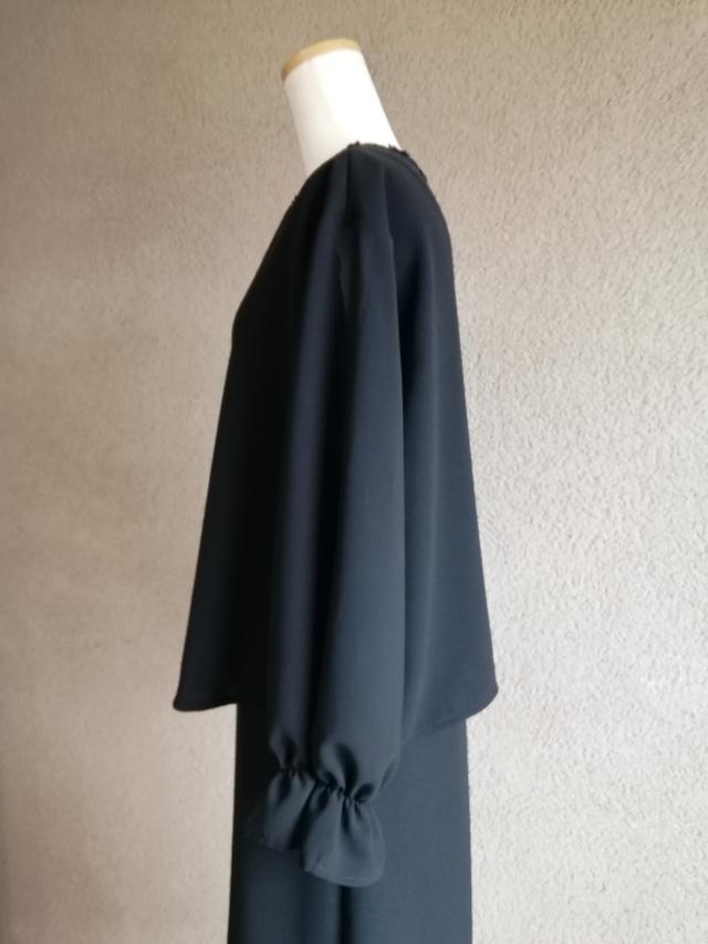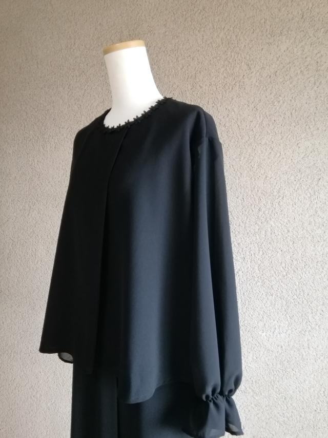ブラックフォーマル用のオールシーズン中肉素材を身頃に使用し、たっぷりの袖ボリュームを抑えるため、ブラックフォーマル用のシフォンを使用しております。