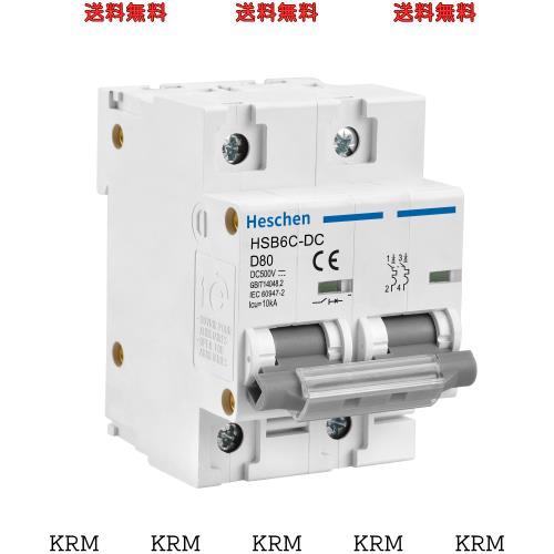 Heschen DC ミニチュアサーキットブレーカー, HSB6C-DC, 2 極, DC500V 80A, ソーラーパネルコントローラーに使ってます, 太陽光発電シス