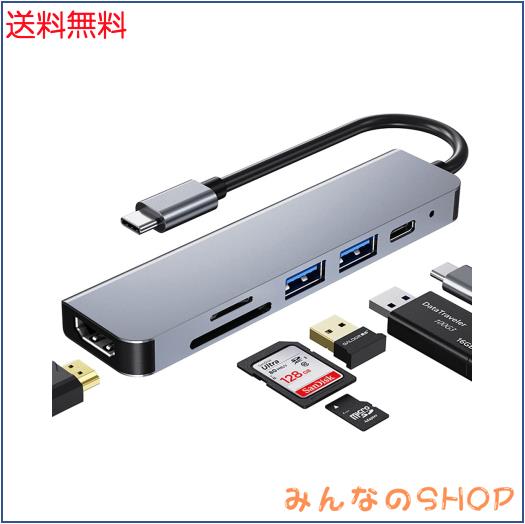 USB C ハブ アダプタ 6-in-1 マルチポート Type-C 【4K HDMI + 87W 高速 PD充電+USB3.0ポート + SD&TFカードリーダー】 USB Typec ハブ