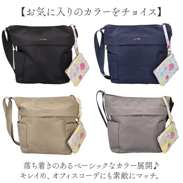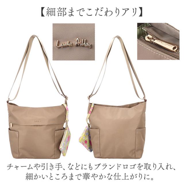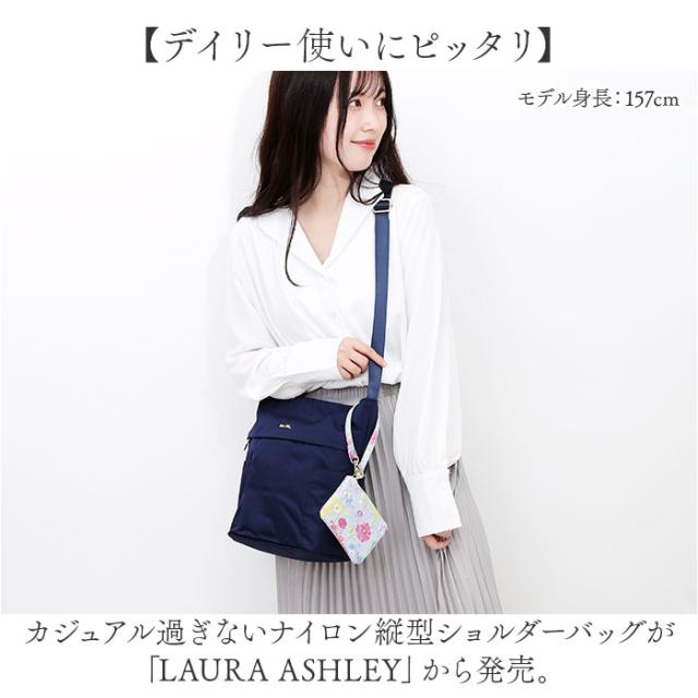 LAURA ASHLEY ローラアシュレイ 縦型 ショルダーバッグ ILNL-03 通販 ショルダーバック ショルダー 肩掛け 斜めかけ 縦型ショルダー 軽い 軽量 はっ水 撥水 ナイロン ポケット たくさん Laura Ashley レディース 上品 光沢感