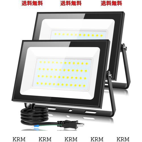 KIWEN【超薄型・2個セット】 LED投光器 80W 10000LM 昼光色 ledライト 屋外 IP66 防水 豪雨対応 作業灯 led 100V対応 アース付きプラグ P