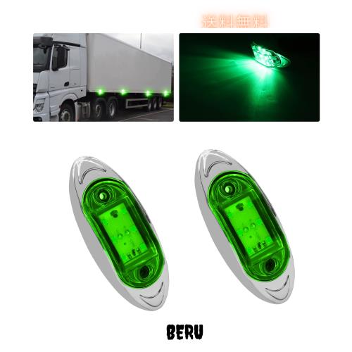 ◆商品名:Aoling サイドマーカー LED 12V 24V 緑 トラック用 マーカーランプ RV バス 路肩灯 軽トラ 6LED グリーンレンズ 電気メッキ本体 防水防塵
