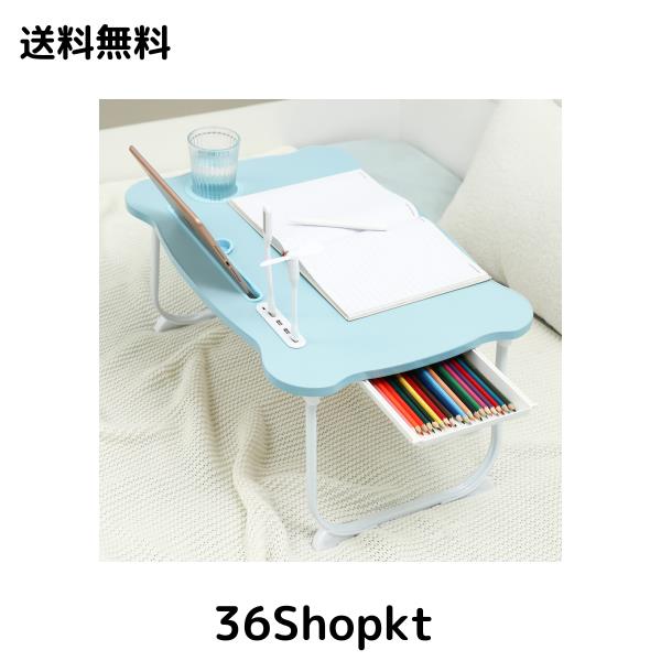 ?【多機能折りたたみテーブル】読書灯とファンが付属しています、折りたたみテ ーブルには、4*USBポート・スマホスタンドスロット。このカップスロットとスマホスタンド、折りたたみテーブルを自宅で仕事や勉強に使う時にとても便利なデザインです。テーブルの下の収納引き出しには、筆記用具やイヤホン、ケーブル、SDカードなどの収納に便利です。