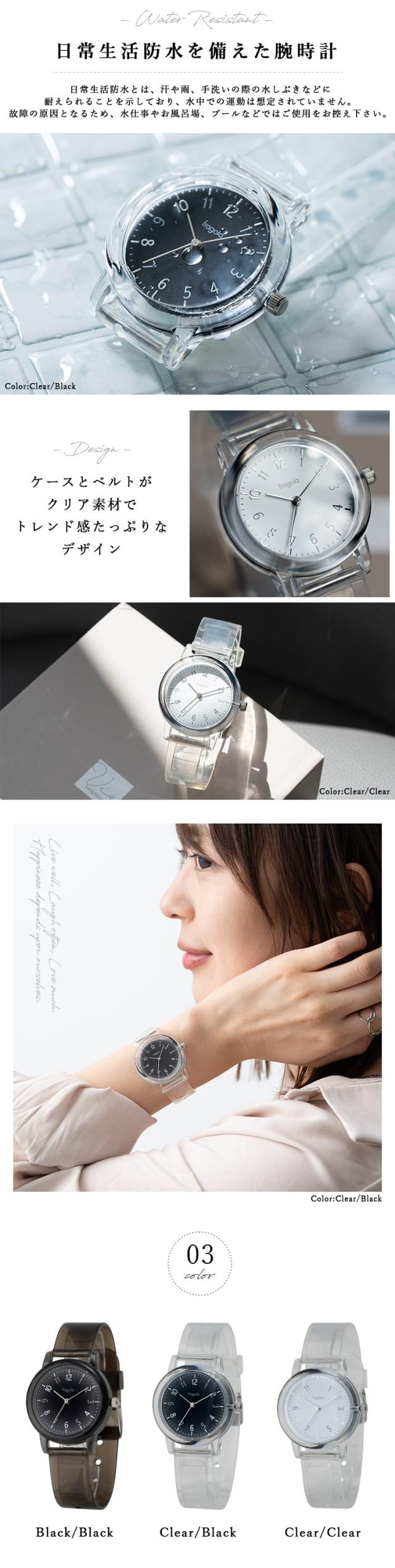 腕時計 レディース 3気圧防水 ブランド クリアケース 透明 ウォッチ ラバー シリコン ベルト かわいい おしゃれ 大人 仕事 学生 20代 30代 40代 女性 プレゼント ギフト 見やすい 日本製ムーブメント 1年間のメーカー保証付