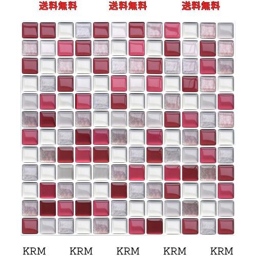 ◆商品名:VANCORE 【10枚】 モザイクタイルシール キッチン リメイクシート タイルステッカー リフォーム 3D防水 はがせる壁紙 レッド