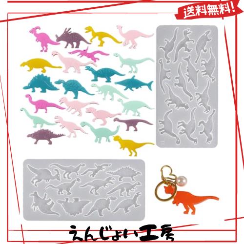 シリコンモールド 恐竜 2個セット 23種類 恐竜 シリコン型 UVレジン型 エポキシ樹脂 粘土 石膏 抜き型 ペンダント ピアス イヤリング ネ