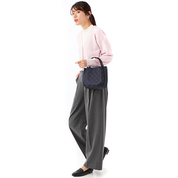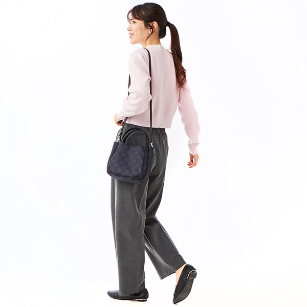 メイン素材に落ち着いたカラーリングのドット柄を施し、どんなお洋服でも楽しめるアイテムに仕上がりました。
