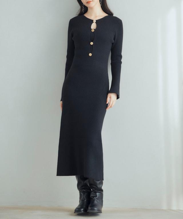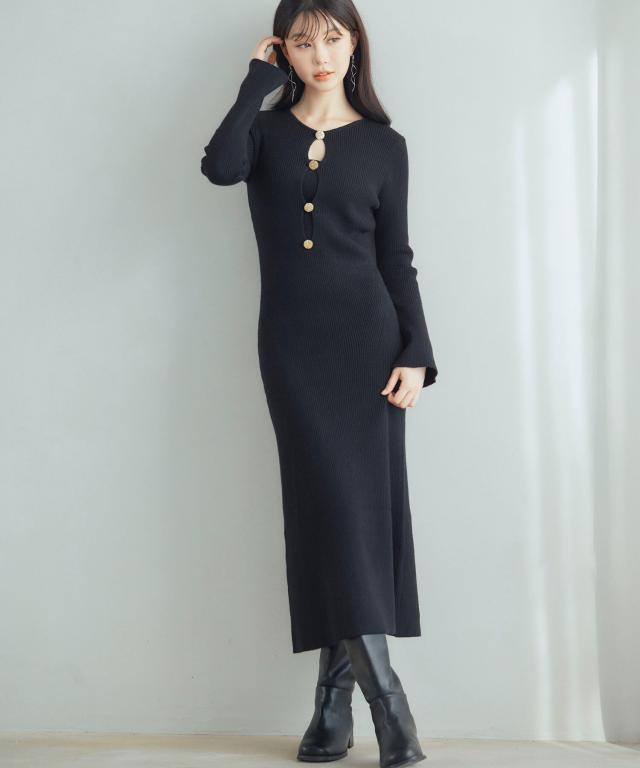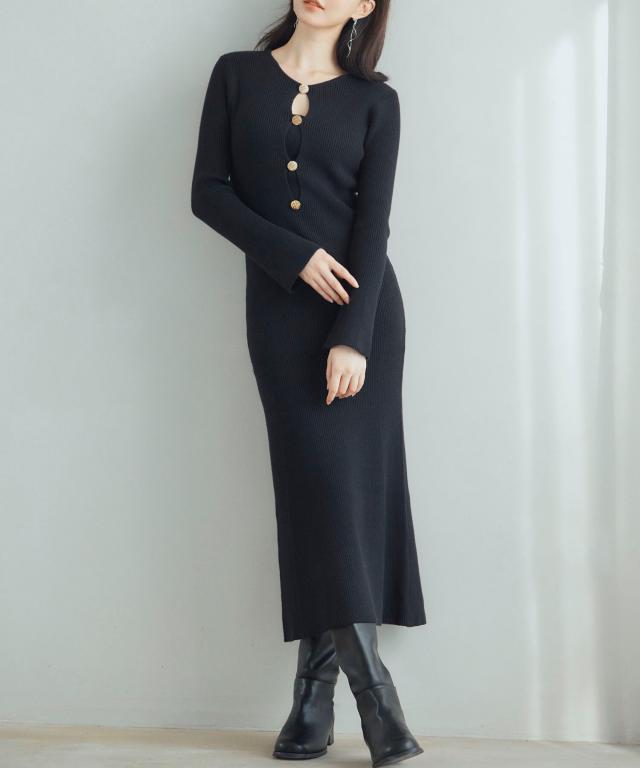 柔らかなリブ編みニットの生地がボディラインにフィット。女性らしさを引き立てるきれいめタイトワンピースです。
