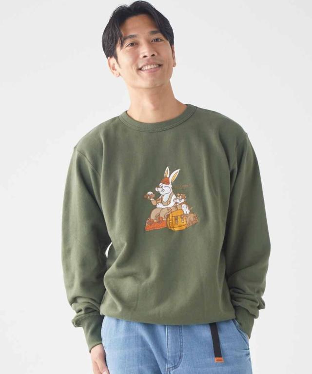 キャンプラビットの刺繍いりクルーネックスウェットです。