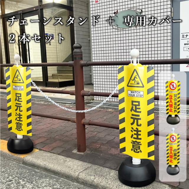 チェーンスタンド+専用スタンドカバー2本セット チェーンスタンドカバー スタンドサイン 足元注意 関係者以外立入禁止 sf-11-cover02-2set