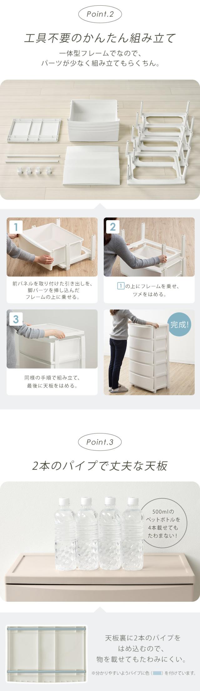 工具不要で、簡単に組み立てができるワイドチェスト。