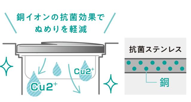 気になるぬめりを軽減できる銅配合ステンレス素材の排水口カバー