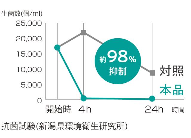 排水口カバーに水が触れると銅イオンが溶けだし菌の増殖を抑制し、ぬめりを軽減します。4時間後には約98%の菌を抑制します。