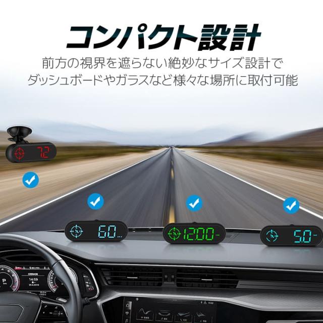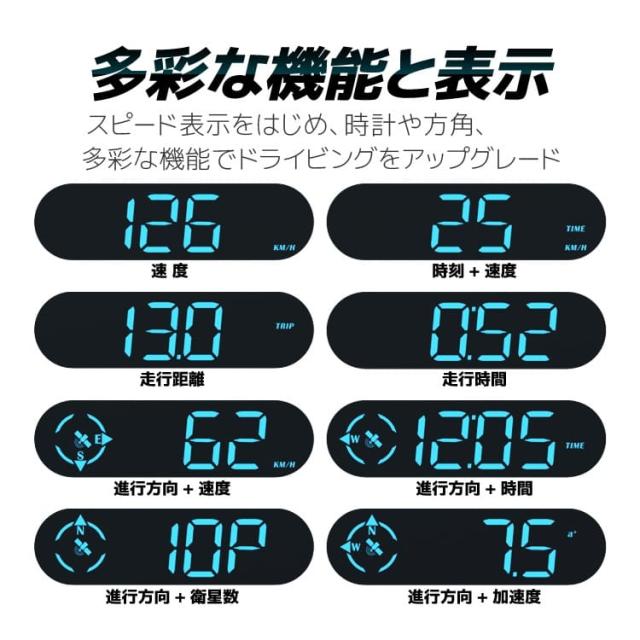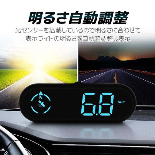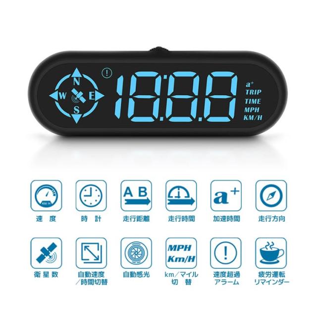 GPS搭載 デジタルスピードメーター GPS時計 GPSスピードメーター 光センサー搭載 エンジン連動起動 速度/進行方角 HUDG9
