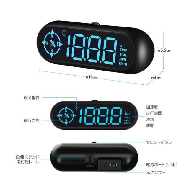 シンプルでスタイリッシュな方角表示機能搭載のGPSデジタルスピードメーターです。