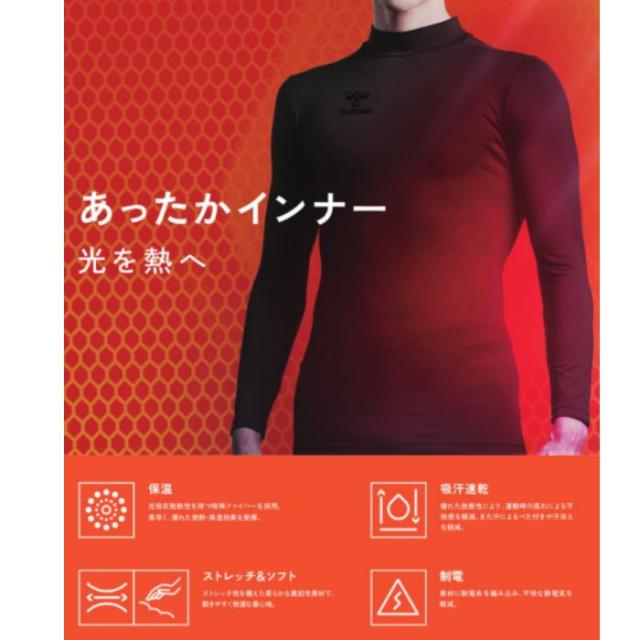 【メール便だと送料無料】あったかインナーシャツ モックネック ヒュンメル/hummel HAP5160 | メンズ レディース ユニセックス 2024年 秋 冬 サッカー バレーボール 防寒 発熱 保温 アンダー ウエア 首あり ハンド 暖かい シンプル ワンポイント 厚手 静電気防止 裏起毛 長袖