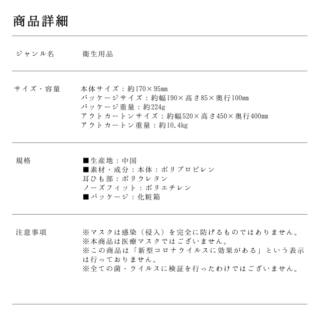 ●本品は有害な粉塵やガス等が発生する場所や、それを防ぐ目的には使用できません。