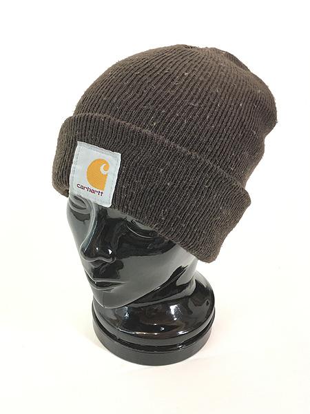 雑貨 古着 90s Canada製 Carhartt ロゴ パッチ ニット ワッチ キャップ ビーニー 茶 帽子 古着