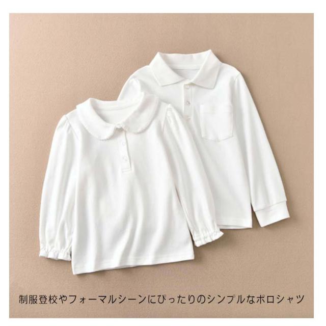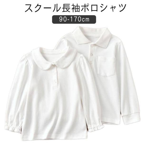 スクール ポロシャツ キッズ 長袖 女の子 男の子 綿 コットン かわいい フリル 胸ポケット 吸汗 ストレッチ 伸縮 ホワイト 通学用 保育園 中学生 スクールポロシャツ 透けにくい 通園 白 制服 小学生 学校用 小学校