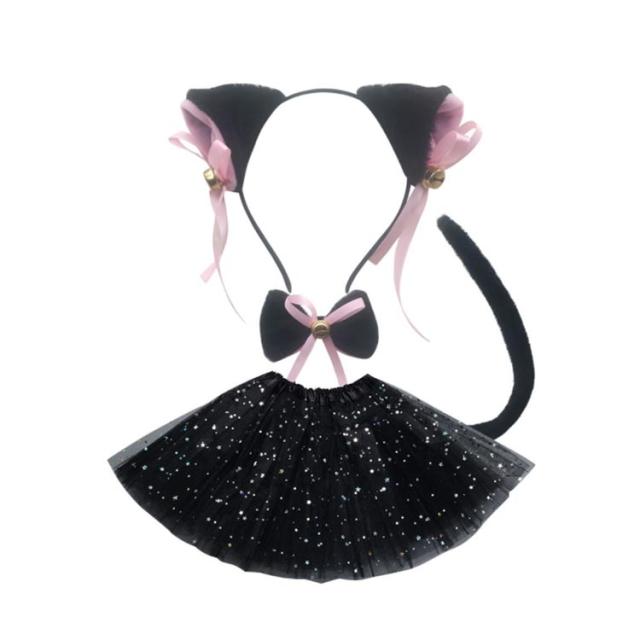 ハロウィン 衣装 子供 女の子 黒猫 白猫 コスプレ仮装 4点セット 可愛い チュールスカート 猫耳カチューシャ リボン しっぽ キッズ コスチューム ハロウィン仮装 子供 コスプレ衣装 変装 パーティー テーマパーク 発表会 学園祭 演奏会 保育園 幼稚園 送料無料