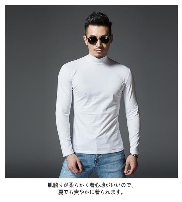 Tシャツ メンズ 長袖 Tシャツ ロンT 無地 ハイネック タイトフィット 長袖Tシャツ インナー モックネック カットソー 白 黒 ホワイト グレー 無地 細身 スリム 秋 秋服 秋物 秋冬 吸汗 速乾 アンダーシャツ タートル スポーツ 現場 作業着 作業服
