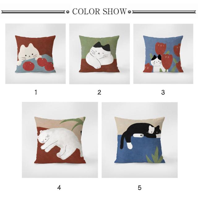 送料無料 クッションカバー 45×45cm 猫 ネコ カフェ風 抱き枕カバー キャット 猫のイラスト 北欧 アニマル 動物 クッション カバーのみ 単品 クッションカバー ソファ 枕 カバー 水洗いOK 新生活 新居 引越し祝い 新築 子供部屋 インテリア 雑貨