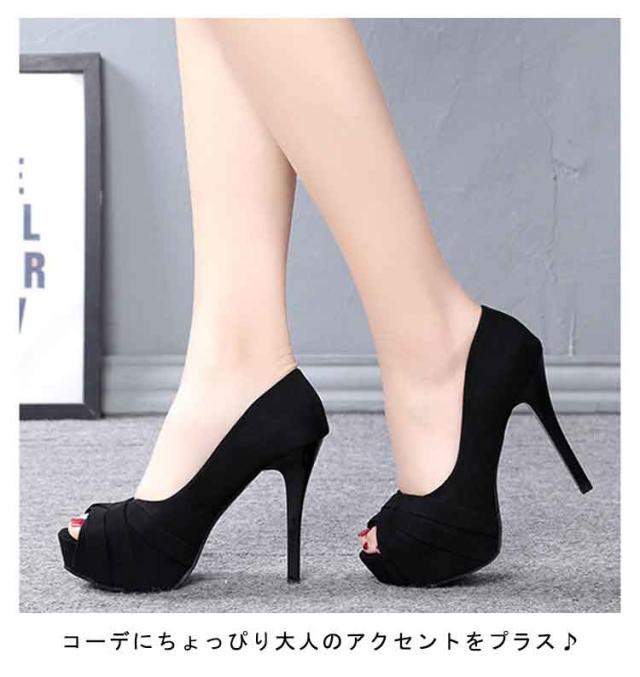 オープントゥ 12cm パンプス 前厚 スエード調 パーティーシューズ ストーム 3cm パンプス サンダル 超ハイヒール 黒 結婚式 キャバクラ 痛くない 通勤 オフィス 美脚パンプス ブライダルシューズ 結婚式 パーティ