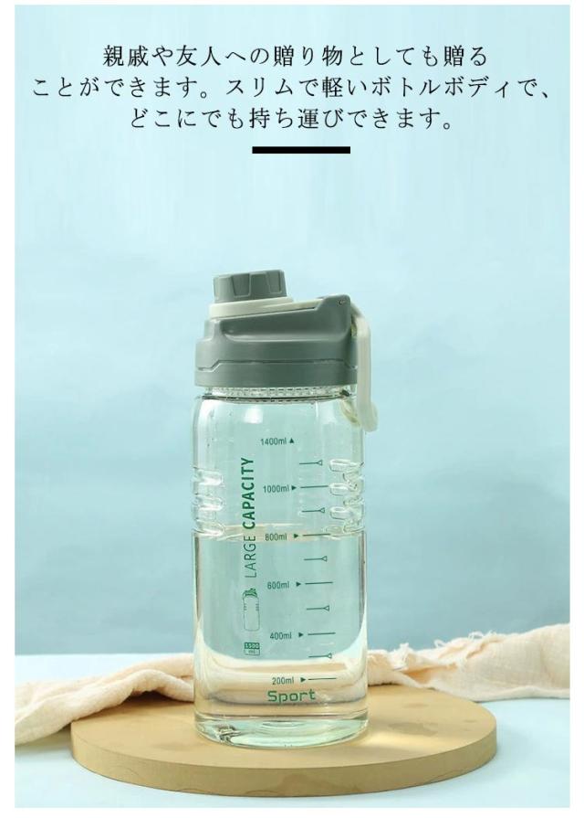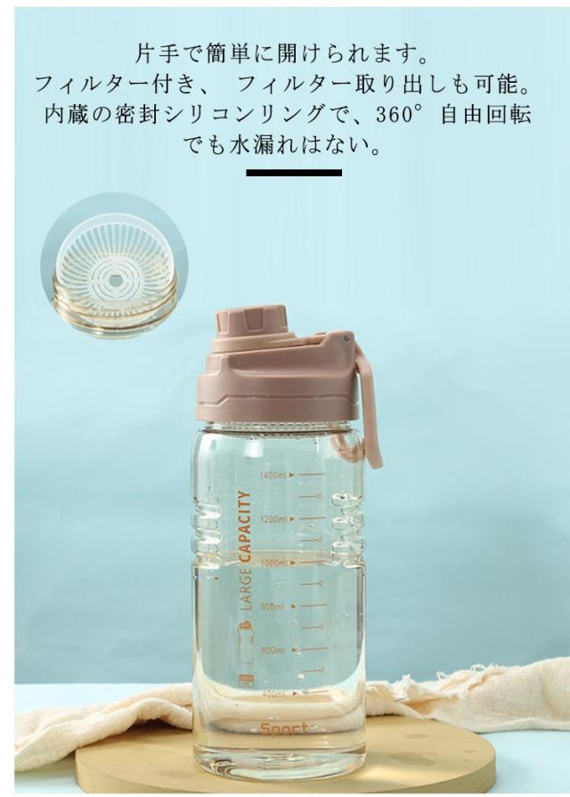 | 1500ml大容量のウォーターボトルです。 透明度があり目盛りも付いてるので、残りの水量がひと目で分かります。 このスポーツボトルはマラソンやジムなどに最適です。 水分補給と一日中十分な水を飲むことを思い出させます。 人体に悪影響のないPP素材を採用し、無臭で健康的な水飲みに。 大型のウォーターボトルは、1日を通して毎日の水とフィットネスのニーズを満たすことができます。 片手で簡単に開けられます。 フィルター付き、 フィルター取り出しも可能。内蔵の密封シリコンリングで、360°自由回転でも水漏れはない。 ウォーターボトル ジム、旅行、自動車、ジョギング、ヨガ、砂浜、登山、キャンプ、遠足、学校、家庭などに使用できます。 親戚や友人への贈り物としても贈ることができます。スリムで軽いボトルボディで、どこにでも持ち運びできます。 | |