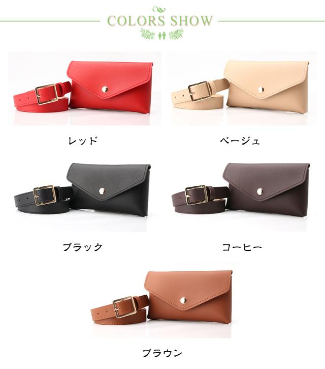 | 【バッグ付きベルト】【5color】 シンプルなのに個性的なウエストバッグ付きベルトの登場です! マット感のある合成皮革を使用しています。 ポーチはスナップボタン式で使いやすい。ベルトも調整できます。 コンパクトでおしゃれなサイズ感なので、必要最低限のものを持ち歩くのにピッタリ! 小ぶりながらも存在感があり、カジュアルコーデと相性抜群なアイテムです♪ スマートフォンやカード類などを収納できて実用的で便利なアイテム。 ウエストポーチは取り外し可能なので、単品にも楽に使えます。 | |