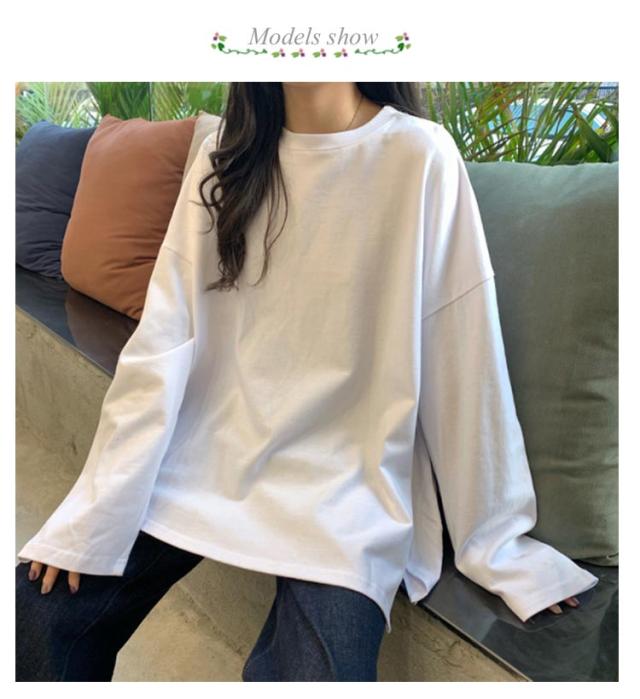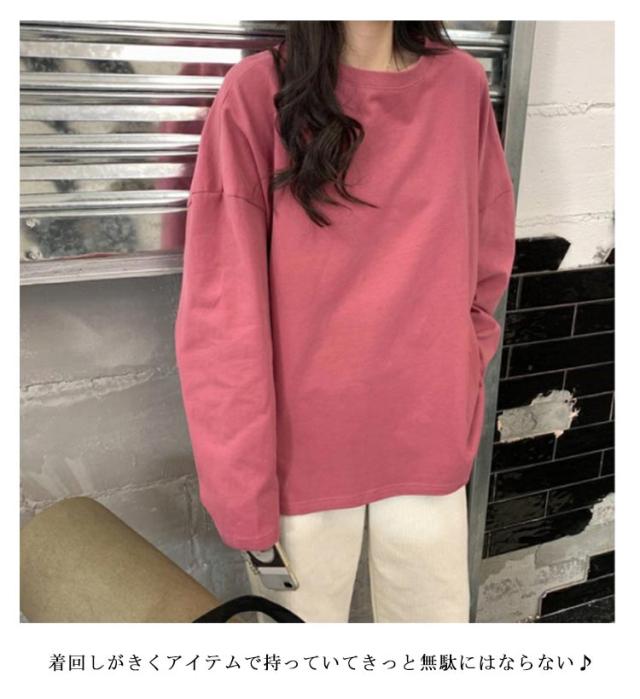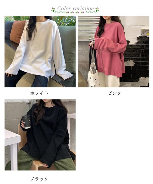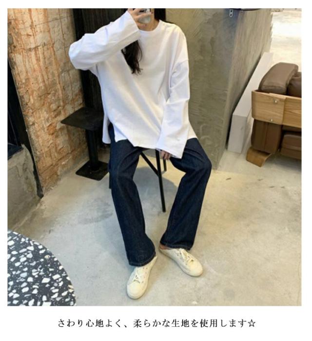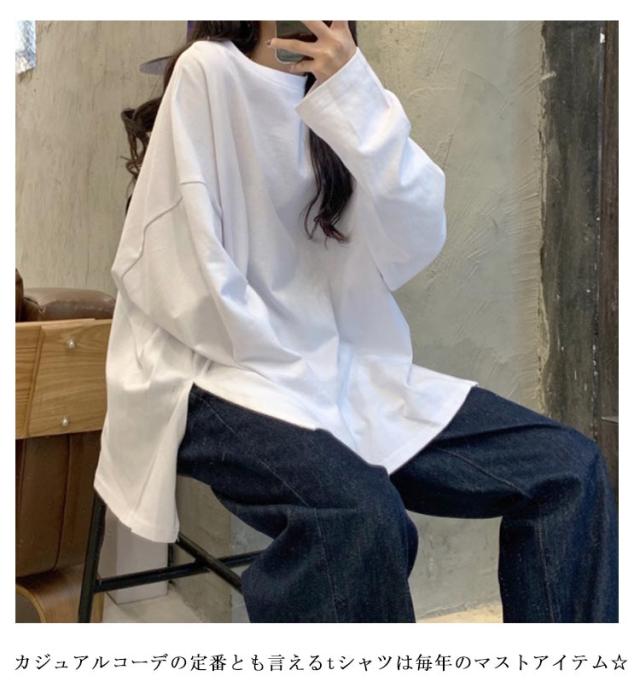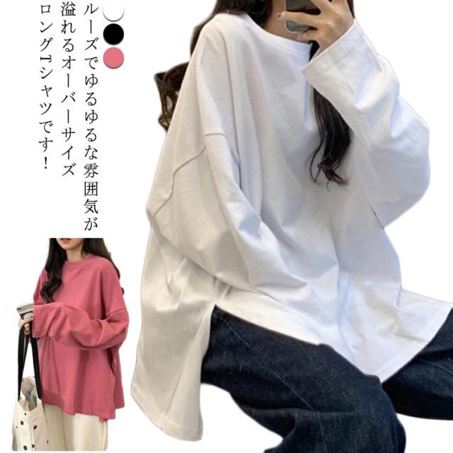インナー トップス 春秋冬 ゆったり レディース 長袖Tシャツ 長袖Tシャツ サイドスリット ロンt トレーナー クルーネック 大きいサイズ 通勤 カジュアル 通勤 通学 女性 きれいめ