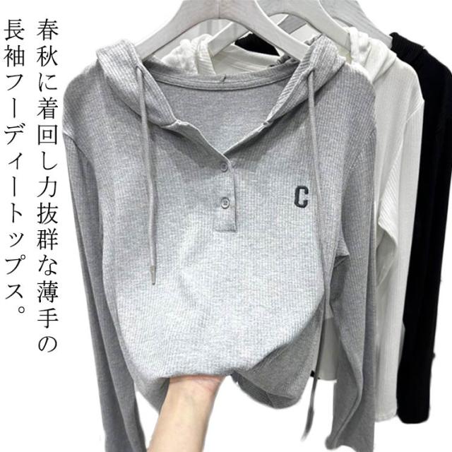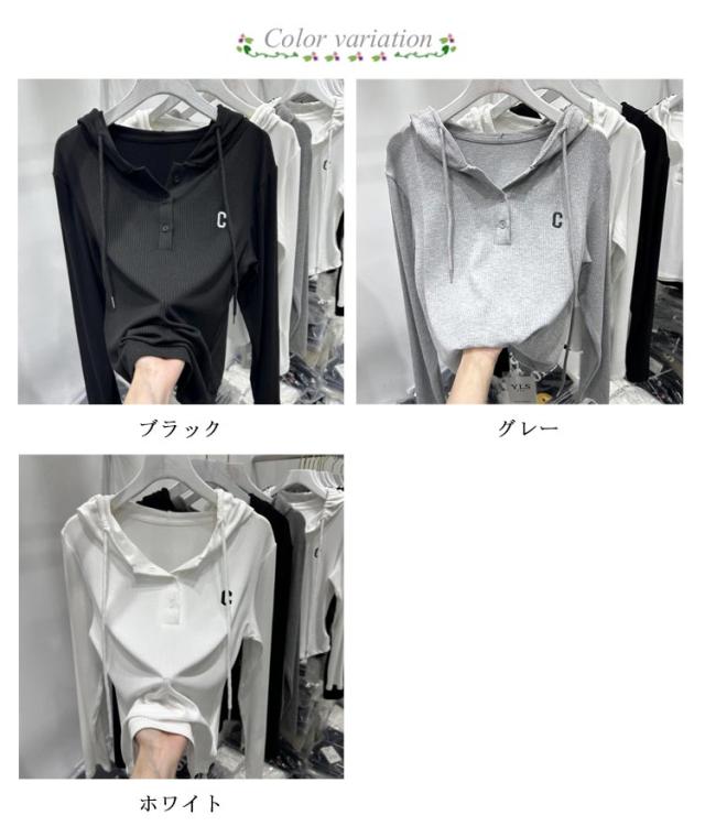 | 春秋に着回し力抜群な薄手の長袖フーディートップス。 胸元ボタンの開け閉めで表情が変わり、合わせるアイテム次第で印象チェンジも思いのまま。 首元をスッキリと魅せてく れるので、小顔効果も期待できます機能性もバツグン! 肌触りも良く、着心地抜群だから毎日着たくなる♪ | |