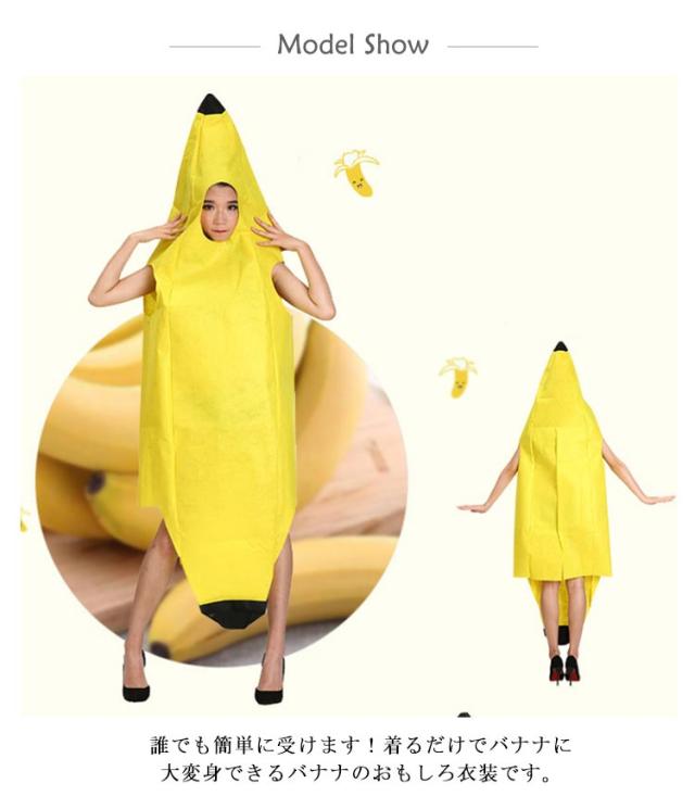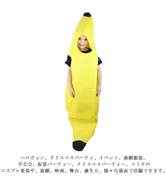 | 楽しい!おもしろい!あっという間に面白いバナナに変身♪ 誰でも簡単に受けます!着るだけでバナナに大変身できるバナナのおもしろ衣装です。 小さなお子様から大人の方まで2サイズ展開。 折りたたむと小さくなりますので、カバンに入れて会場で簡単に着替えができます! みんなお揃いでバナナ服を着て、新年会、忘年会、文化祭、学園祭など演奏やダンスのお揃いの衣装でバッチリ。 ハロウィン、クリスマスパーティ、イベント、演劇服装、学芸会、仮装パーティー、クリスマスパーティー、コミケのコスプレ変装や、演劇、映画、舞台、誕生日、様々な場面で活躍できます。 | |