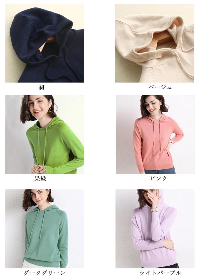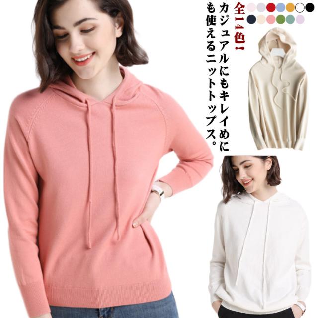 通学 カシミヤ調 全14色!ニットパーカー パーカー 20代 レディース フード付きパーカー セーター 全14色!ニットパーカー 通勤 レイヤード ゆったり フード付き 30代 40代 春服 秋服 秋冬