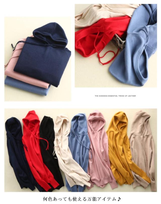 | 全14色!カジュアルにもキレイめにも使えるニットトップス。 何色あっても使える万能アイテム♪ 頭からかぶるタイプなので、フードにひも付きことも可愛かったです♪ 薄く過ぎず厚くすぎず、程度良い厚みで長く愛用していただけます。 やみつきのニット生地で春秋に単品として着られ、冬にインナーとして使えるのも嬉しい。 裾と袖にはリブ編み仕様で冷気入りにくく、すっきりとしたシルエットに カラーから、コーディネートのアクセントになるカラーまでご用意しました! シンプル無地タイプでパンツでもスカートでも、合わせやすく、ロングシーズン大活躍間違いなし。 | |