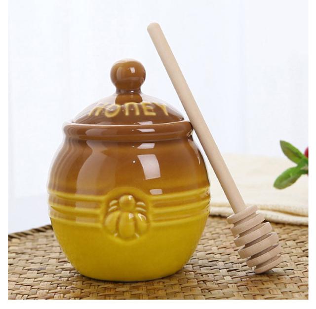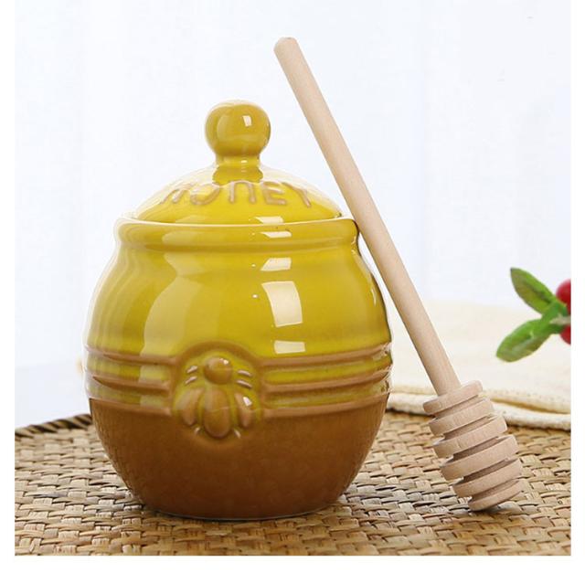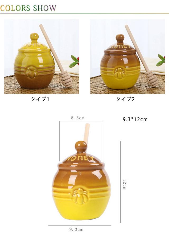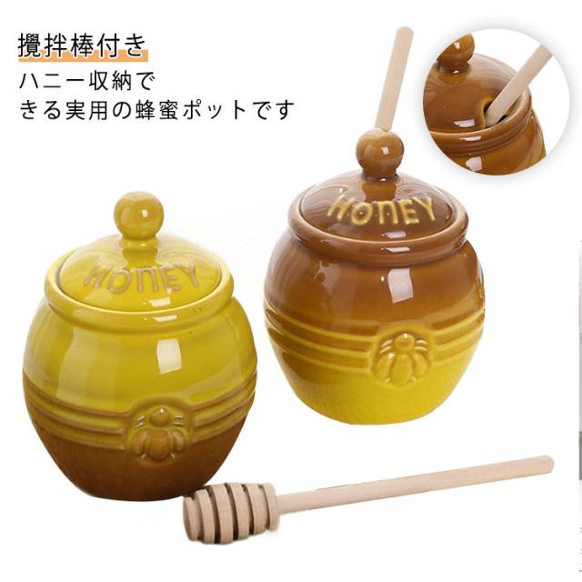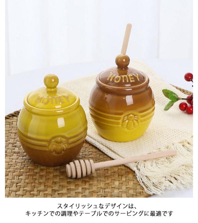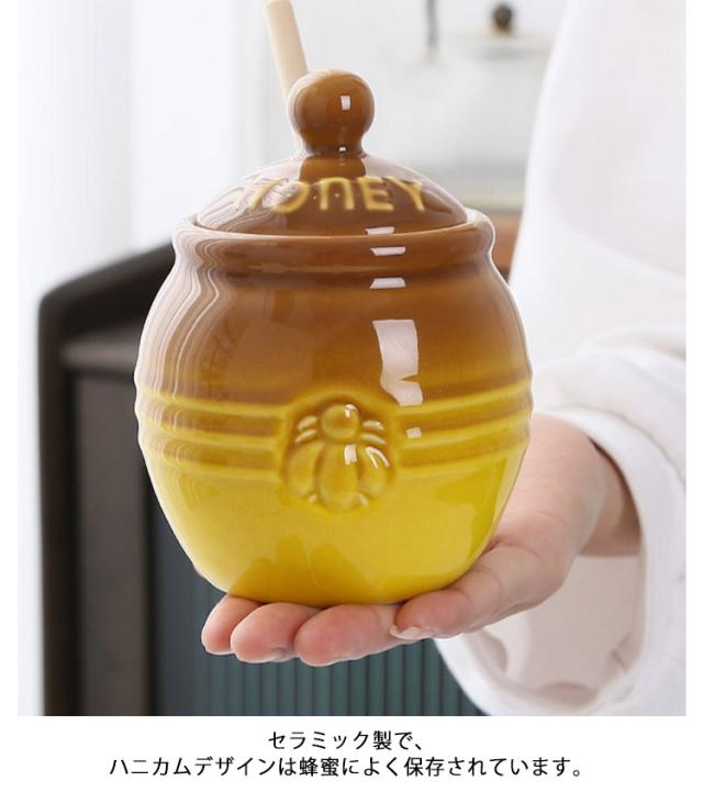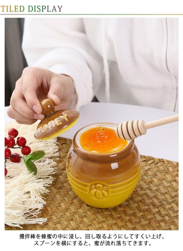 はちみつ容器 キャニスター ハニーポット 蜂蜜ホルダー セラミック 蓋付き 蜂蜜容器 ハニーポット 蜂蜜スプーン 攪拌棒付き 調味料入れ 家庭用 キッチン用 保存容器 お洒落 多機能