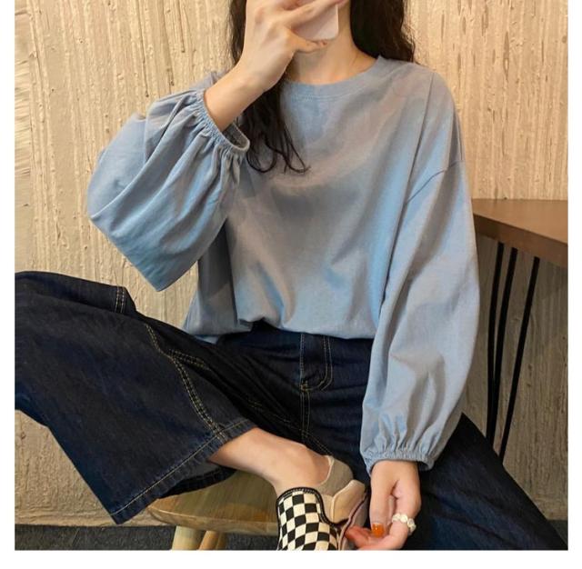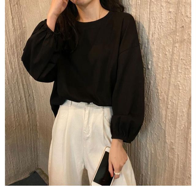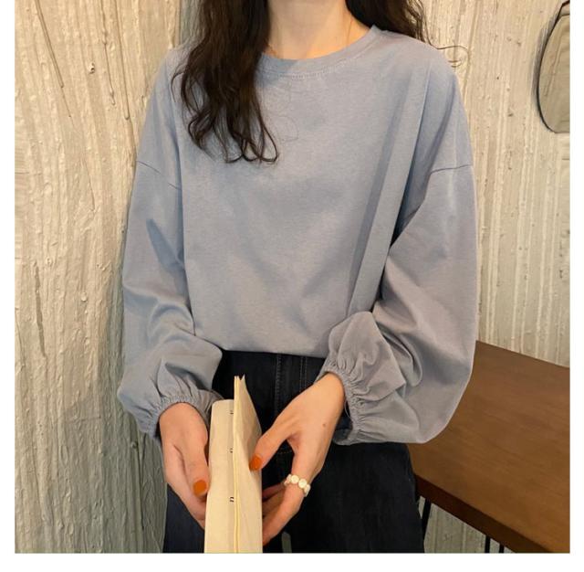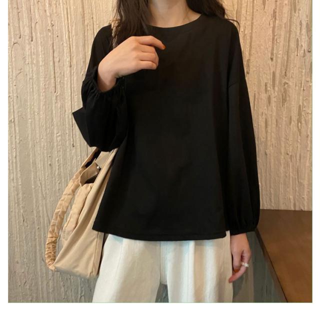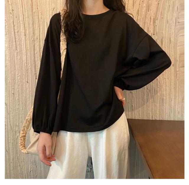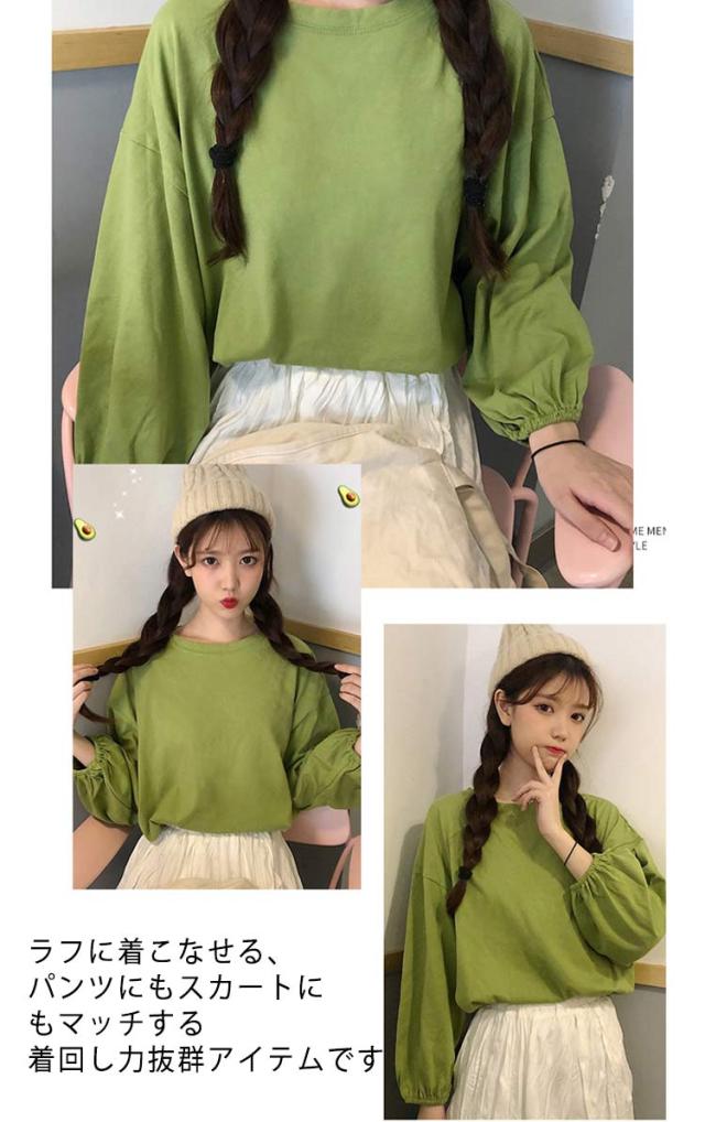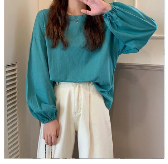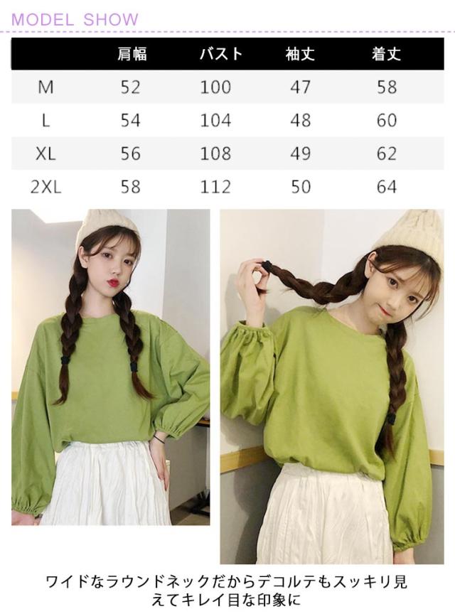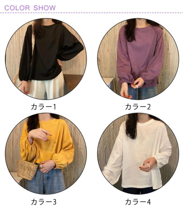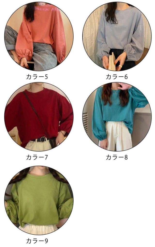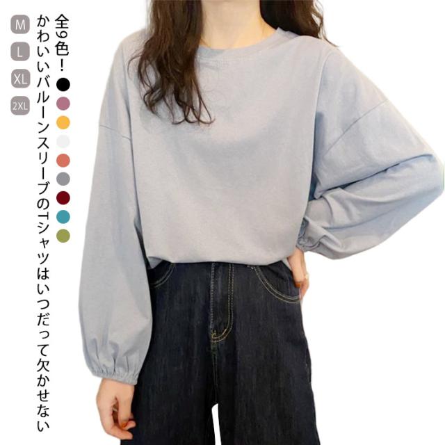 バルーンスリーブ 長袖 秋 バルーンスリーブ 無地 秋 トップス 体型カバー カットソー プルオーバー 丸首 着やせ 冬 大人カジュアル 春 カジュアル tシャツ ゆったり 全9色 M L XL