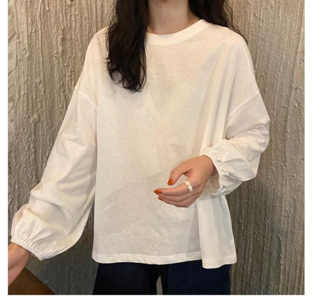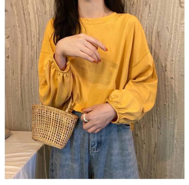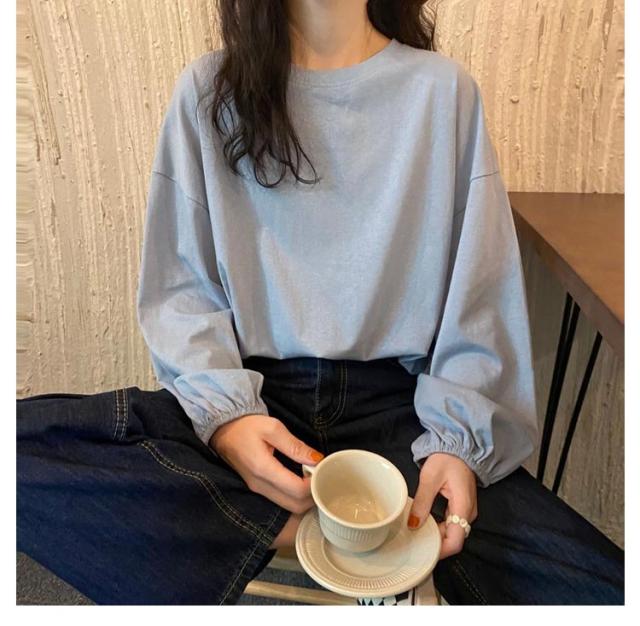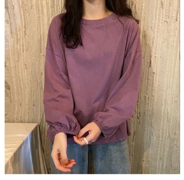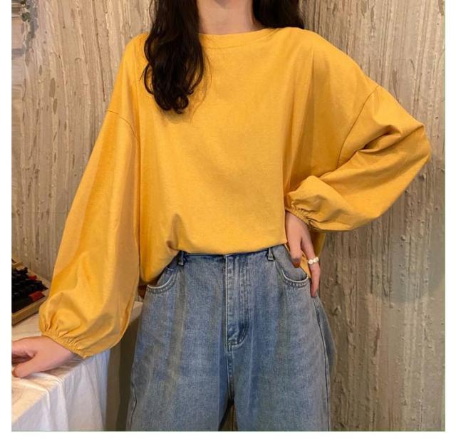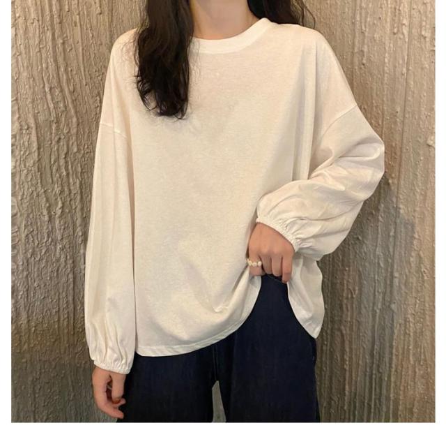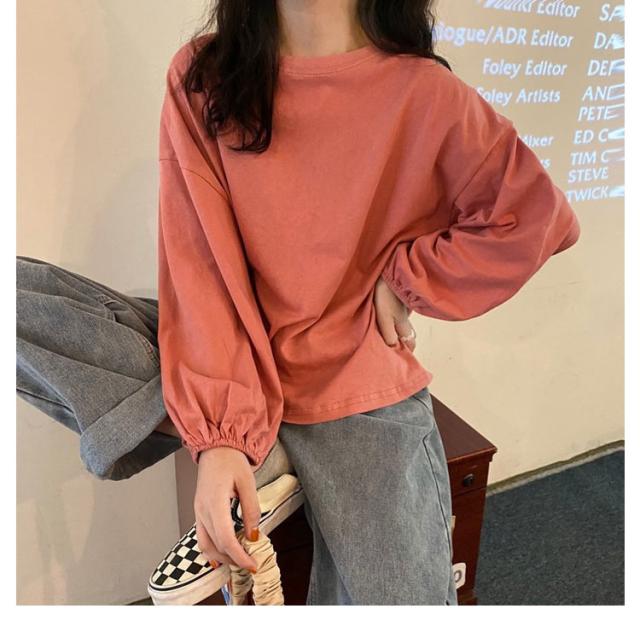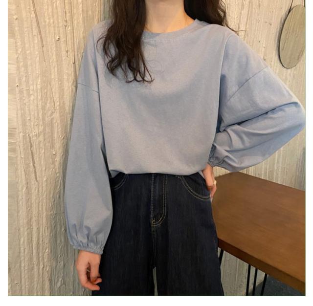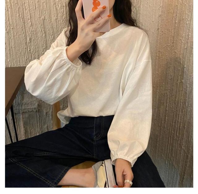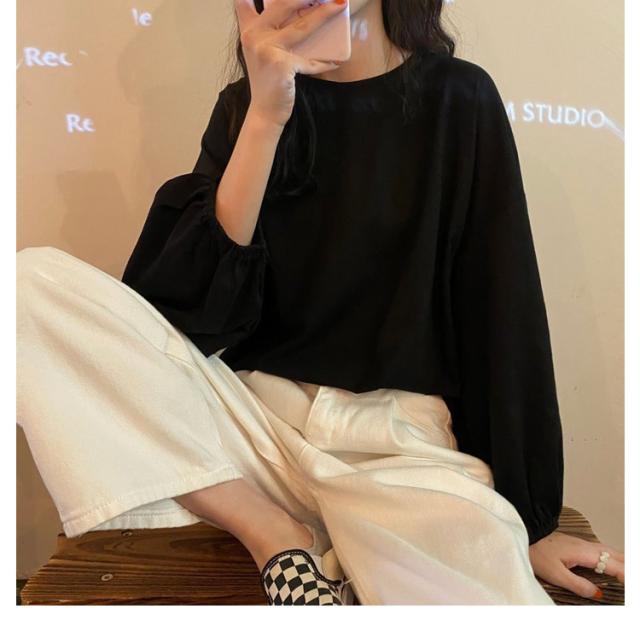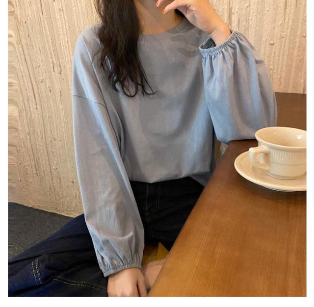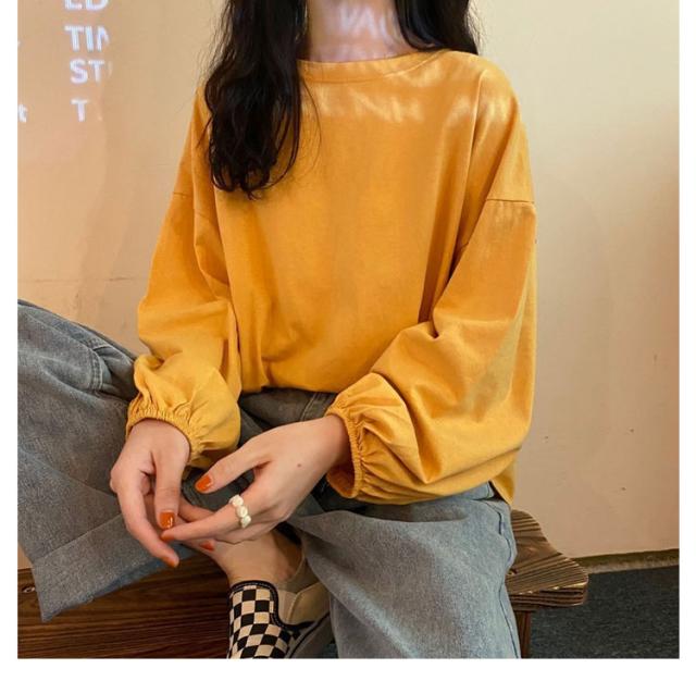 バルーンスリーブ 長袖 秋 バルーンスリーブ 無地 秋 トップス 体型カバー カットソー プルオーバー 丸首 着やせ 冬 大人カジュアル 春 カジュアル tシャツ ゆったり 全9色 M L XL