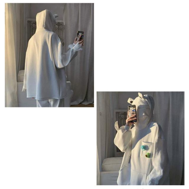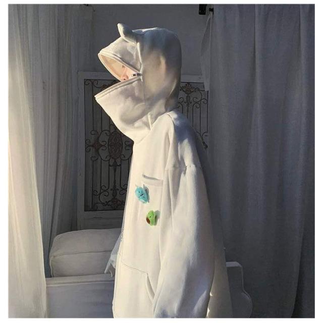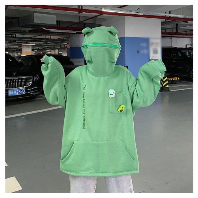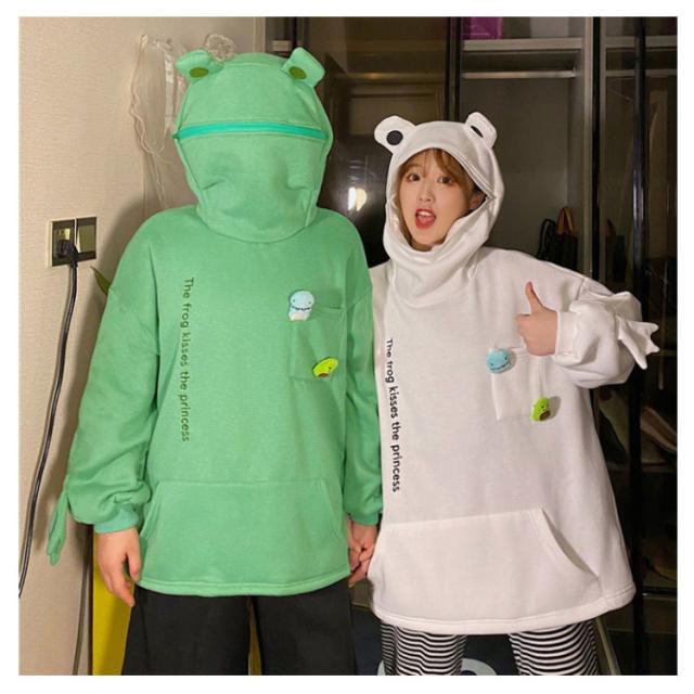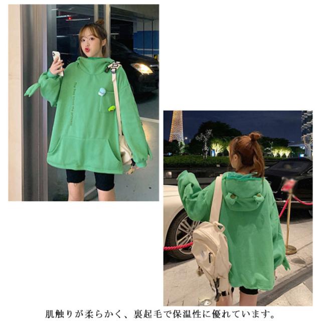 | フードのジッパーがカエルの口になる形のパーカー! 肌触りが柔らかく、裏起毛で保温性に優れています。 オーバーサイズの作りでかぶるだけで体型カバーできます。 男女兼用タイプでカジュアルシーンに大活躍するアイテムです。 | |