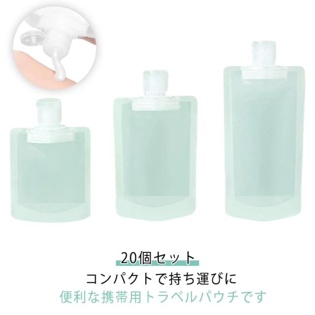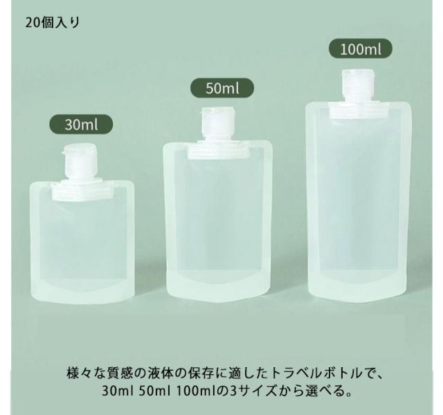 【20個】パウチ容器 小分け シャンプー 【20個】パウチ容器 パウチ トラベル パウチ 詰め替え 小分けボトルトラベル液体個包装 使い回し トラベルボトル つめかえそのまま 収納 旅行ボトル 半透明 密封性 30ml 50ml
