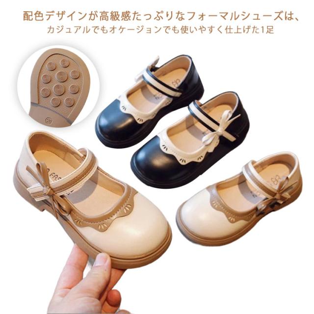 | 配色デザインが高級感たっぷりなフォーマルシューズは、カジュアルでもオケージョンでも使いやすく仕上げた1足。 つま先ゆったり設計で履きやすい。 幼稚園や小学校の入学式・発表会・卒園式などで活躍する。 かわいい靴下やタイツ合わせもおすすめ。 | |
