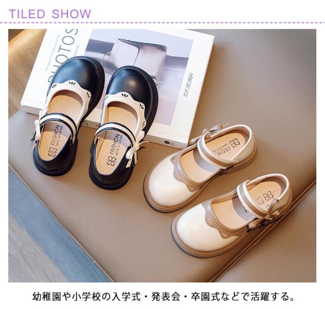 キッズ 配色 靴 フォーマルシューズ ストラップ フォーマル 女の子 ベビー 結婚式 フォーマル靴 シューズ 姫系 子供靴 リボン リボン キッズ 配色 ピアノ 演奏会 ピアノ発表会 可愛い 韓国 履きやすい 小学生 通学 ブラック