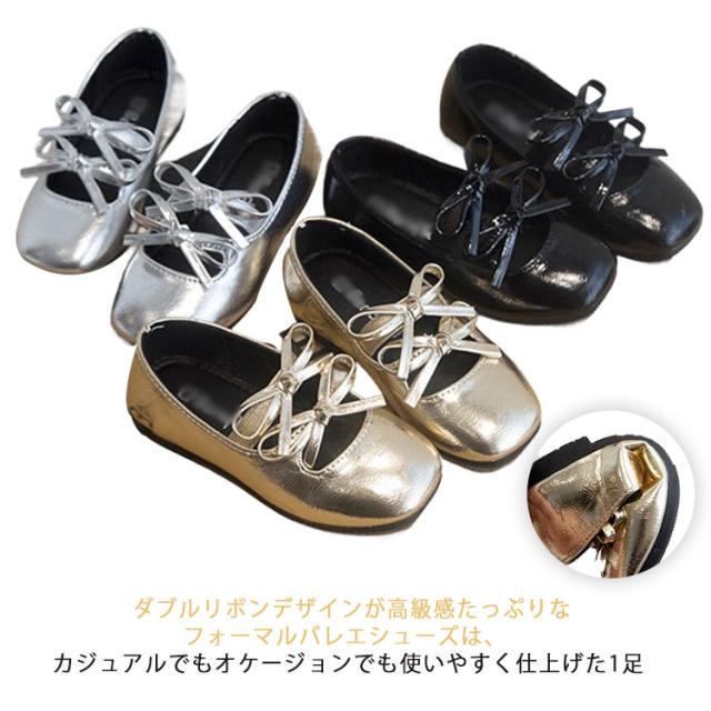 ピアノ発表会 ダブルリボン 発表会 キッズ バレエシューズ フォーマル シューズ 子供 おしゃれ ダブルリボン 子ども こども 女の子 リボン バレエ靴 フォーマルシューズ ドレスシューズ シルバー ゴールド ブラック 結婚式 履きやすい