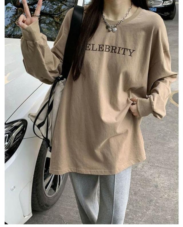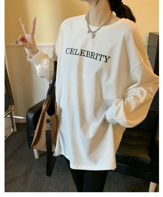 Tシャツ ティーシャツ レディース ロングtシャツ トップス ロンT お尻が隠れる 長袖tシャツ 英字 プリント 大きいサイズ ロングtシャツ ルームウェア インナー きれいめ ルーズ 体型カバー お洒落 M 大人 カジュアル シンプル カットソー L XL