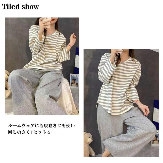部屋着 冬 レディース カップ付きパジャマ Tシャツ ボーダー柄 ルームウェア 秋 2点セット 長袖 パジャマ カップ付きパジャマ 寝巻き ナイトウェア リラックス 寝間着 ロングパンツ 可愛い 通気性 柔らかい 女性用 婦人用 母の日 春 夏 送料無料