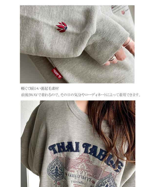 クラシカルエルフ冬新作 java ジャバコラボ トップス スウェット レディース 前後 2way タイ レシピ 刺繍 裏起毛スウェット 男女兼用 ユニセックス メンズ ゆるっと オーバーサイズ 大きいサイズ 2024aw jv1330001