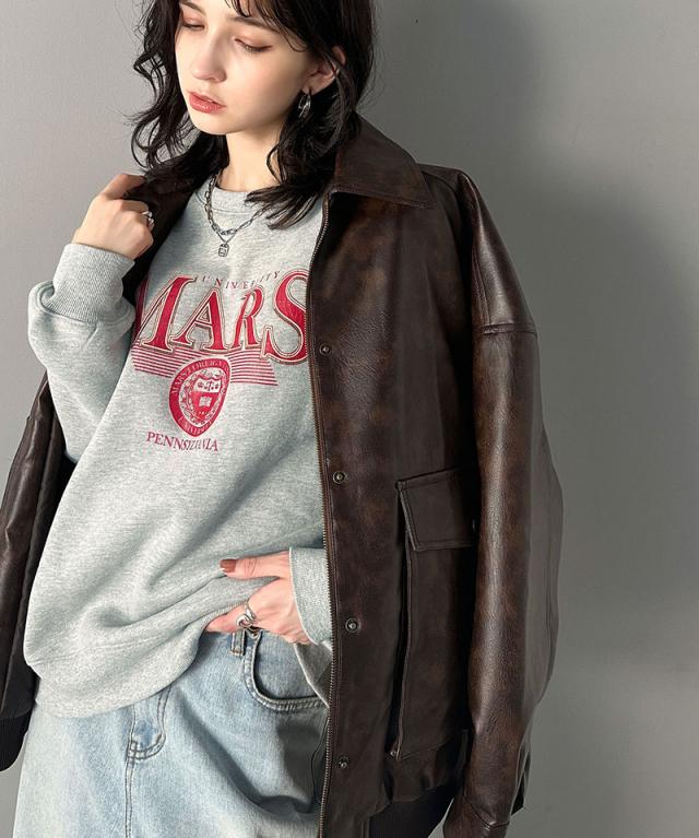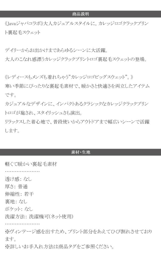クラシカルエルフ春新作 javaジャバコラボ トップス スウェット レディース カレッジ ロゴ クラック プリント 裏起毛スウェット 男女兼用 ユニセックス メンズ ゆるっと オーバーサイズ 大きいサイズ 2026ss jv1330003