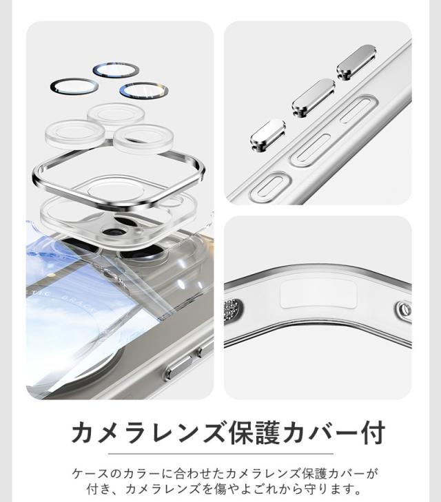| ・カメラレンズ保護カバー付 ケースのカラーに合わせたカメラレンズ保護カバーが付き、カメラレンズを傷やよごれから守ります。 ・耐衝撃性にも優れた素材 衝撃に強いTPUと丈夫なPC素材を使用しています。 ・充電もスマートに ケースをつけたまま充電も可能。 |