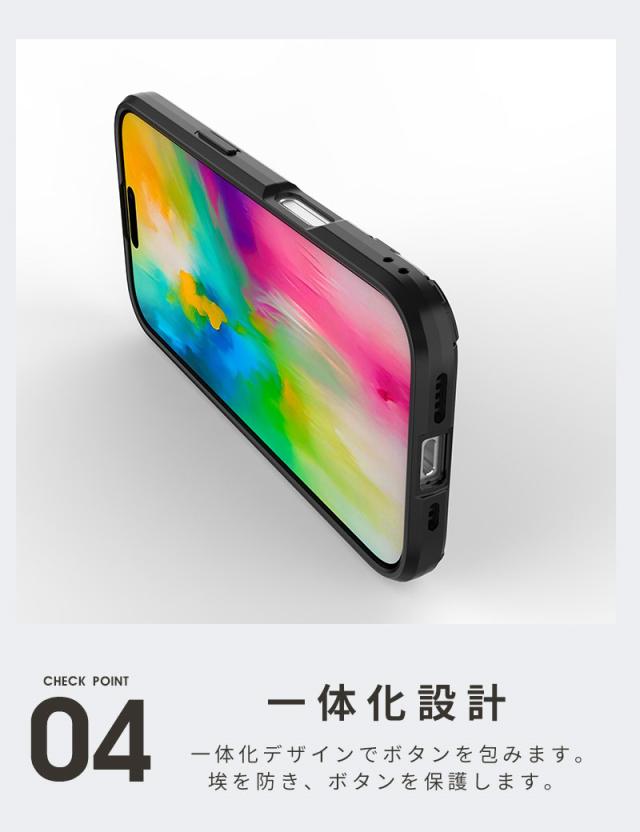 ポリカーボネート+高品質TPUの2重構造で衝撃から全方位をガードする背面ケース。