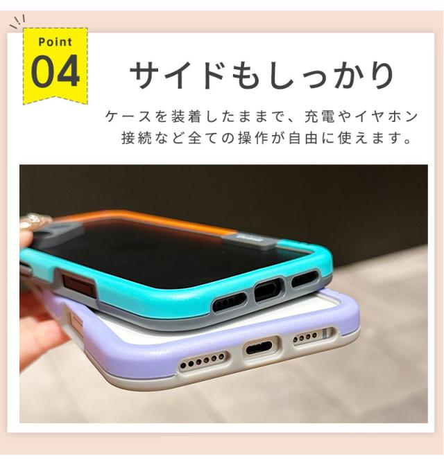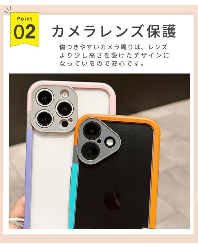 | ・バンパーケース バンパーを装着したままで、純正の各種ケーブルの接続や写真撮影、ボタンの操作が可能です。 ・カメラレンズ保護 傷つきやすいカメラ周りは、レンズより少し高さを設けたデザインになっているので安心です。 快適な操作性 ボタン部分はケースの上でも押しやいように作成しています。 |